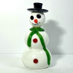 Vtg Handcrafted Blown Glass Art Snowman White Glass Green Scarf Christmas Frosty