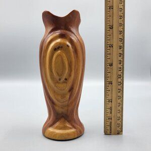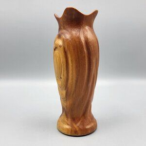 Vtg Handcrafted Carved Cherry Wood Folk Art Vase Les Smith Home Decor 6.75"