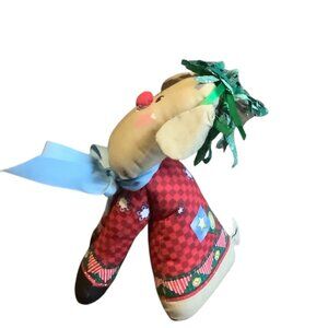 Vtg Handcrafted Reindeer Plush Decor Festive Red Outfit Ribbon Accents 10"