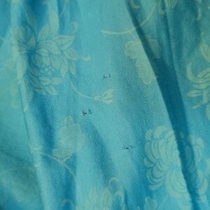 Original waist tie is missing. Some discoloration and a few small holes that are not noticeable when worn. Since dress is handmade there are no tags. Waist Tie has been replaced with a Satin Sash.