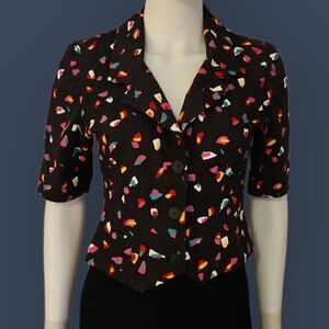 Vtg Handmade 1980s Colorful Patterned Cropped Button Down Short Sleeve Shirt