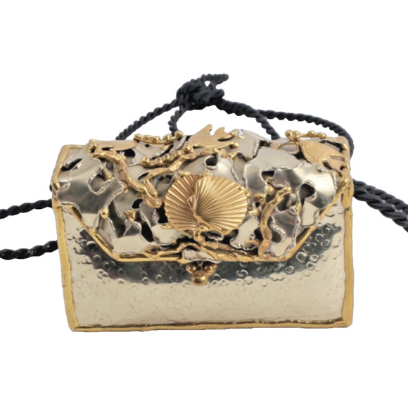 Vtg Handmade Artisan Mixed Metal Sea Life Themed Minaudiere' Evening Bag 1980's