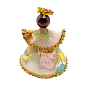 Vtg Handmade Christmas Ornament Angel Old Christmas Postcard / Card Primitive