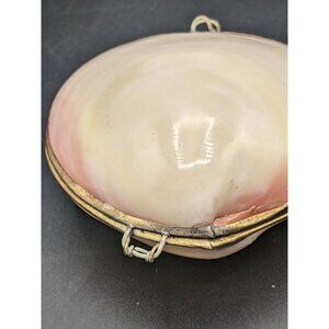 Vtg Handmade Clam Shell Hinged Trinket Box Made in Philippines Brass Clasp 3"