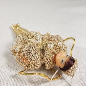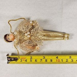 Vtg Handmade Doll Style Glittery Angel Christmas Ornament Gold & Silver Color 5"