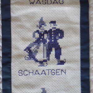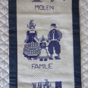 Vtg Handmade Dutch Cross Stitch Needlepoint Wall hanging w/ 6 Dutch Scenes