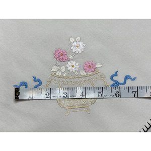 Vtg Handmade Embroidered Needlepoint Small Tablecloth Floral Ribbons Pink Blue 3