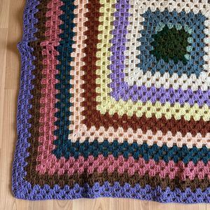 Vtg Handmade Granny Crochet Afghan throw Blanket 42x42 Roseanne Style Granny Afghan is in great condition. Please see all photographs for details.