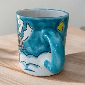 Vtg Handmade Hand Painted Santa Sleigh And Reindeer Coffee Mug Made In Italy