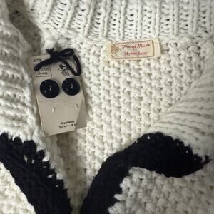 Vtg Handmade Oversized Knit Cardigan Sweater Womens Small Black White Textured