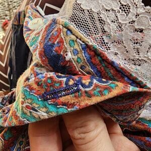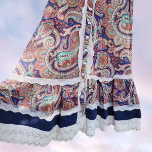 Vtg Handmade Ruffle Paisley Colorful Frill Whimsi Pocket Lace Button Up Skirt
