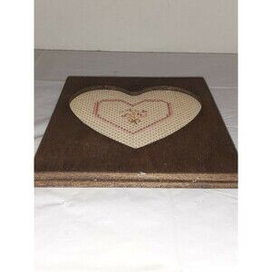 Vtg Handmade Rustic Wood Heart Frame Cross Stitch Heart Boho Country