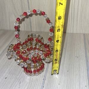 This exquisite jewelry basket features a stunning combination of red and gold beads, perfect for adding a touch of elegance to your collection.