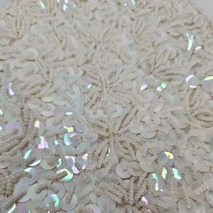 Vintage Handmade White Pearl Bead Sequin Clutch Evening Bag Gold Chain Clasp.