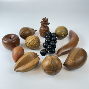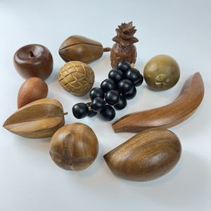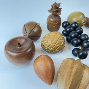 Vtg Handmade Wooden Fruit Grapes Star Fruit Pineapple MCM Grannycore 11 Pieces