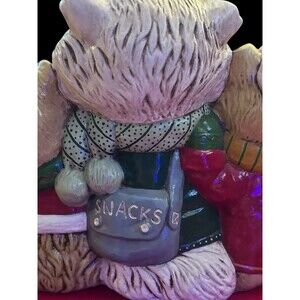This hand-painted ceramic figurine features a festive scene of Christmas caroling kitty cats, perfect for adding a touch of kitschy charm to your holiday decor. Measuring 9.5" in length and 7" in height, this multicolor figurine showcases intricate details and a vintage style. Ideal for collectors or those looking to add a unique accent to their seasonal displays, this forest animal-themed piece is sure to bring joy and whimsy to your home during the holiday season.