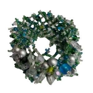 The intricate beadwork showcases a unique, eye-catching pattern. The bracelet is perfect for adding a touch of vintage charm and elegance to any outfit.