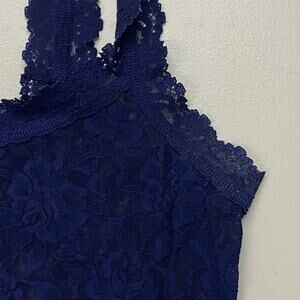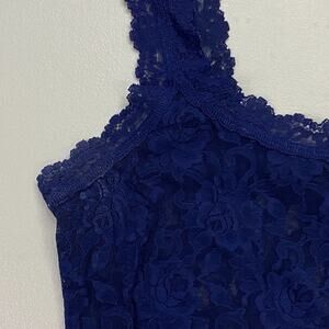 Vtg Hanky Panky Tank Top Women Small Navy Blue Lace Floral Sheer Stretch USA Y2K