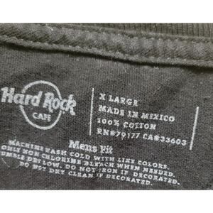 This product is a vintage Hard Rock Cafe Washington DC men's XL black t-shirt, made in Mexico. It features a solid black design with short sleeves, a crew neck, and a graphic print of the Hard Rock Cafe logo. The regular fit t-shirt is made of cotton and is a great addition for any fan of the Hard Rock Cafe or Washington DC.