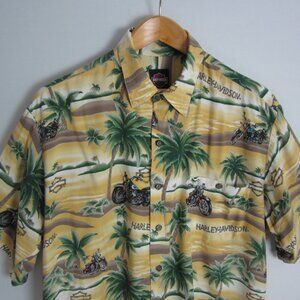 Vtg Harley Davidson Mens XL Biker Hawaiian Floral Button Shirt Made in USA Rayon