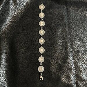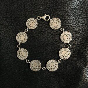 Vtg Harley Davidson Women .925 Sterling Silver Bracelet Skulls Coins Sz 7”