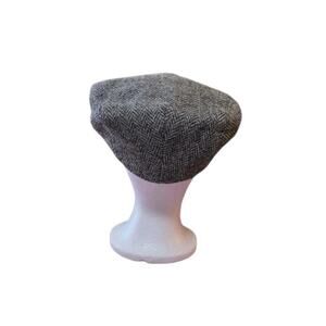 Vtg Harris Tweed Hat Wool Cap Beret Herringbone Brown