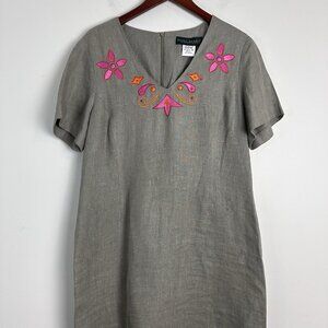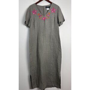Vtg Harve Benard 16 100% Linen Maxi Shirt Dress Beige Long Embroidery Coastal