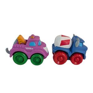 Vintage Hasbro Tonka Lil Chuck & Friends truck lot from 2004/05 includes multiple vehicles and accessories, offering endless hours of imaginative play for children or collectors. Perfect for fans of classic toy trucks. (Appx 4")