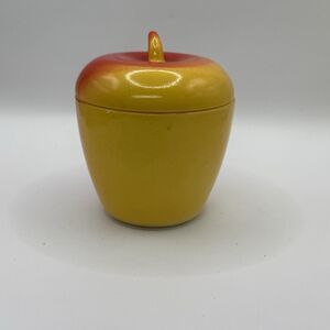 Vtg Hazel Atlas Apple Glass Sugar Jelly Jar Container w Lid Red Yellow Covered