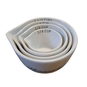 Vtg Hearth & Hand Magnolia Homemade White Stoneware 4 Measuring Cups RARE