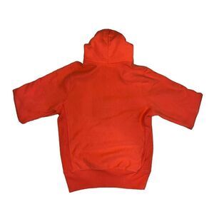 This vintage Champion Reverse Weave hoodie in peach orange is a must-have for any gym enthusiast or casual walker. The long sleeve pullover features a drawstring closure and is made of knit fabric with embroidered logo accents.