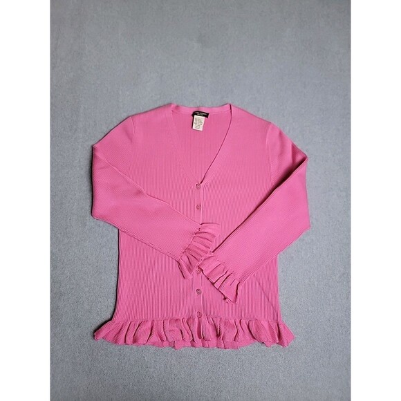 Vtg Henri Bendel Cardigan Sweater Womens L Pink Silk Blend Button Knit Cottage