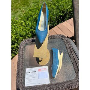 Vtg Herbert Levine KABUKI Shoes 60’s Robin Egg Blue White Leather Platform 5