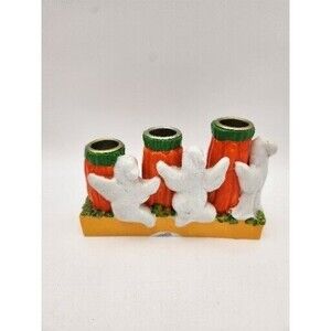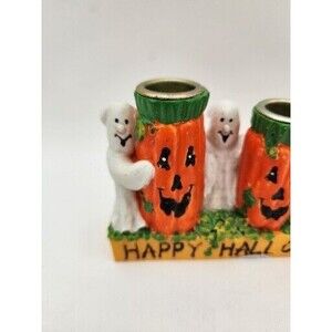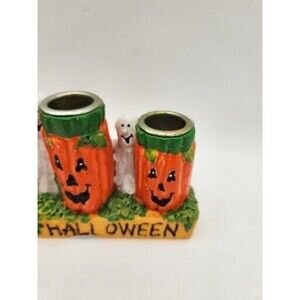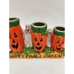 Vtg Hermitage Pottery 3 Taper Candle Holder HAPPY HALLOWEEN Pumpkins & Ghosts