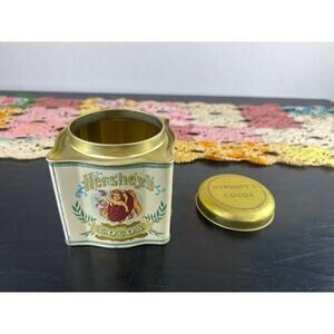 Vtg Hersheys Cocoa Powder Decorative Tin with Lid- Baby Cocoa Bean- Golden