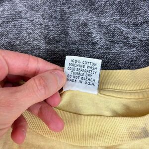 Vtg Hobie 1989 Single Stitch T-Shirt Cycling Surf Men's XL Made In USA Yellow. **There are some significant issues with this shirt; staining on the entire front of shirt as well as some stains on sleeves. Also a pin hole in one sleeve and a large hole in the other sleeve with a stitching issue. Refer to all photos for condition and sizing.