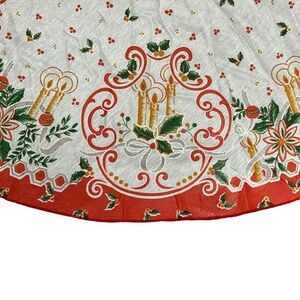Vtg Holiday Christmas Tablecloth 53” For 48" Round Table Santa Holly Candles