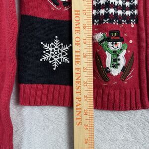 Vtg Holiday Sweater Womens L Red Full Zip Christmas Winter Snowman Grandma 90s