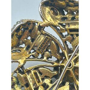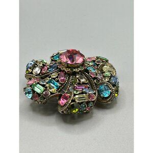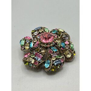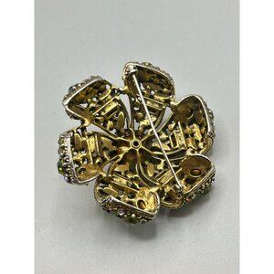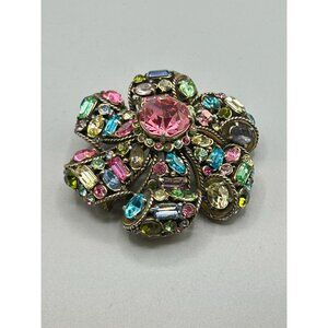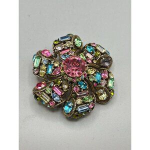 Vtg Hollycraft Pin Brooch Flower Glowing Green Stones Pink Pastels Rhinestones