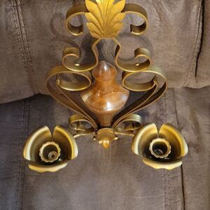 Vtg Hollywood Regency Brass Wood Candlestick Sconce Castlecore Wall Decor