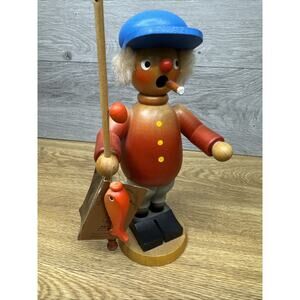 Vtg Holzkunst Christian Ulbricht Fisherman 8.25” Wood German Nutcracker
