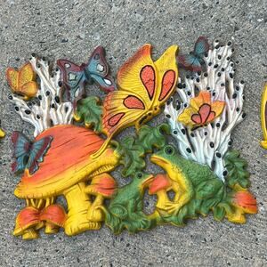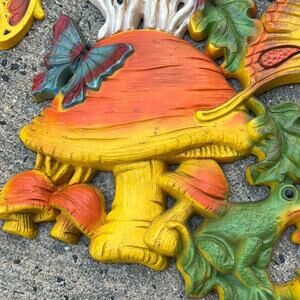 Vtg Homco 3D Mushrooms Frogs Butterflies Wall Decor 18" Psychedelic Retro 1970s