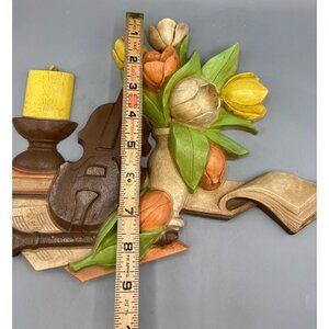 Vtg Homco 3D Wall Decor Flowers Book Candle & Violin