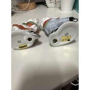 The product is a vintage Homco figurine set featuring winter-themed designs. The set includes figurines of bunny rabbits and a girl and boy ice skating with skates. The figurines are part of the Homco 5305 model and have a traditional style, perfect for collectors or those who enjoy decorative pieces with a touch of nostalgia. The color scheme is multicolor, capturing the essence of winter and the joy of ice skating. This charming set would make a lovely addition to any home decor, especially during the winter season.