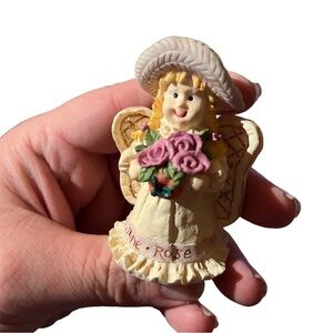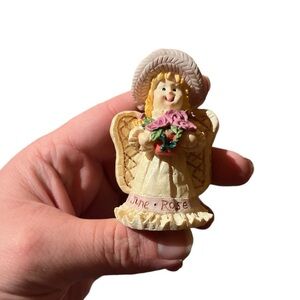 Vtg Home Interiors Angel in Hat Holding Rose June Birth Flower Resin Figurine 5”