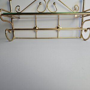 vintage wall shelf, brass wall decor, Hollywood Regency, mid century modern, retro glam, vintage vanity shelf, cottagecore home decor, glass and brass shelf, art deco revival, eclectic wall decor, feminine home aesthetic, maximalist home style, shabby chic, Paris apartment decor, gold wall rack, elegant bathroom shelf, vintage perfume display, sustainable vintage home, boho glam