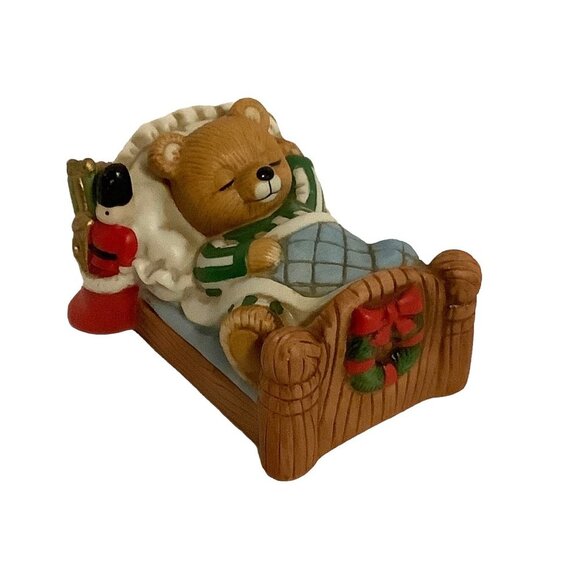 Vtg Home Interiors and Gifts "Visions of Sugarplums" Sleeping Bear Figurine 3"