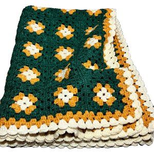 Pre-loved Vtg Homemade Knitted Crocheted Granny Square Throw Afghan Blanket