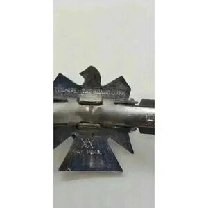 This is the Western Hondo Tie - a take on a bow tie or bolo tie. It is a silver toned metal in a design that reminds me of vintage automobile details and looks like wings. In the center is a Southwest Style Eagle with a giant Rainbow Hematite stone in the center. On the back side of each wing is a clip. You clip each one to your button down shirt collar and wear in lieu of a tie.See photos for condition and sizeA unique metal bow tie with two hinged ends. The collar clips spread open when you flip the hinges forward to place the tie in between the collars. The back reads Wil-Aren copyright the Hondo Clipp. Measures approximately 1 by 3 1/2 inches . In excellent condition.Wil-Aren started in 1976 and ceased business in 1990 and is know for belt buckles.