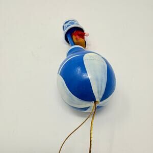 Vtg Hot Air Balloon Wooden Christmas Ornament Blue and White w/ Figure 4"